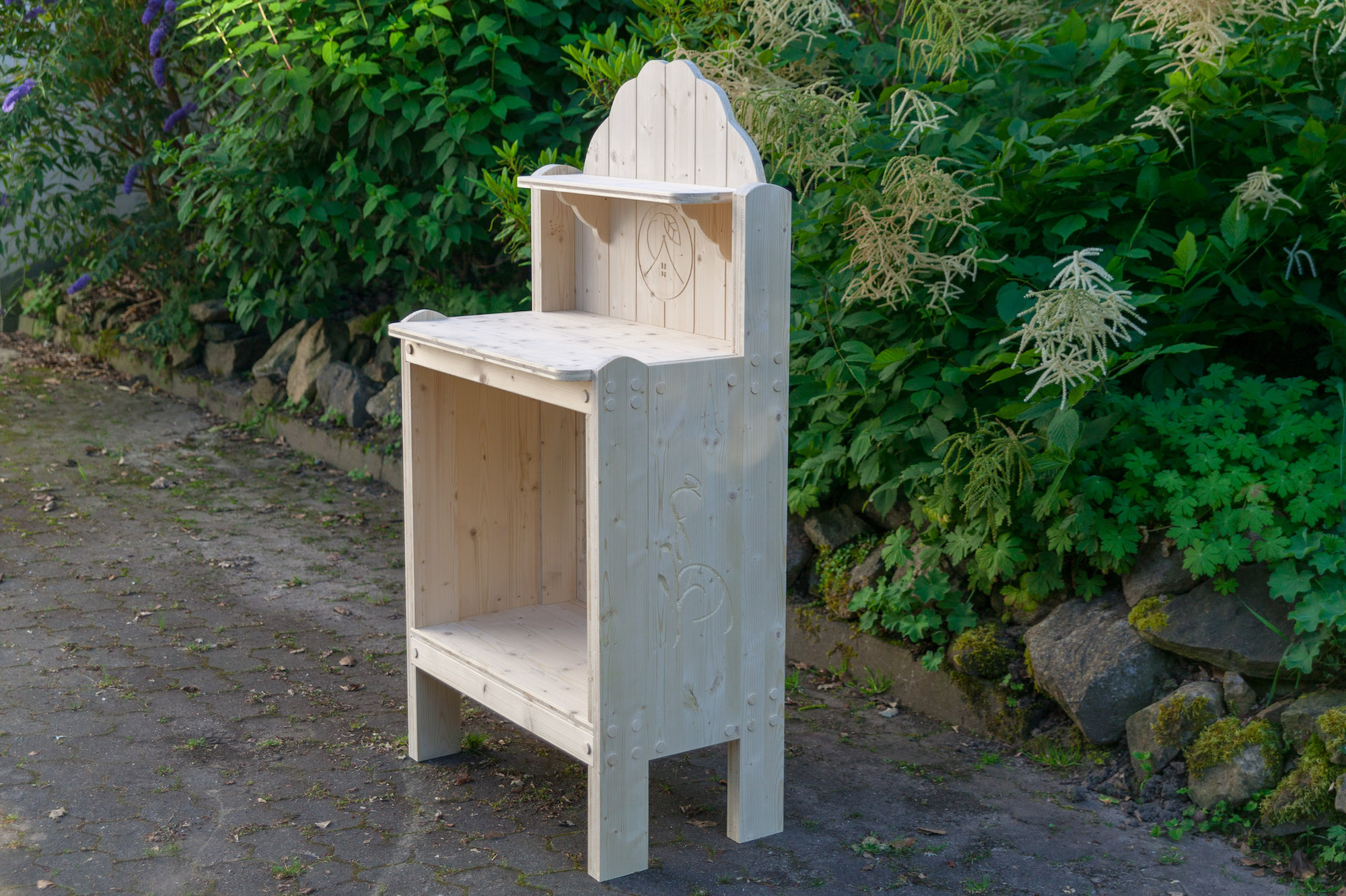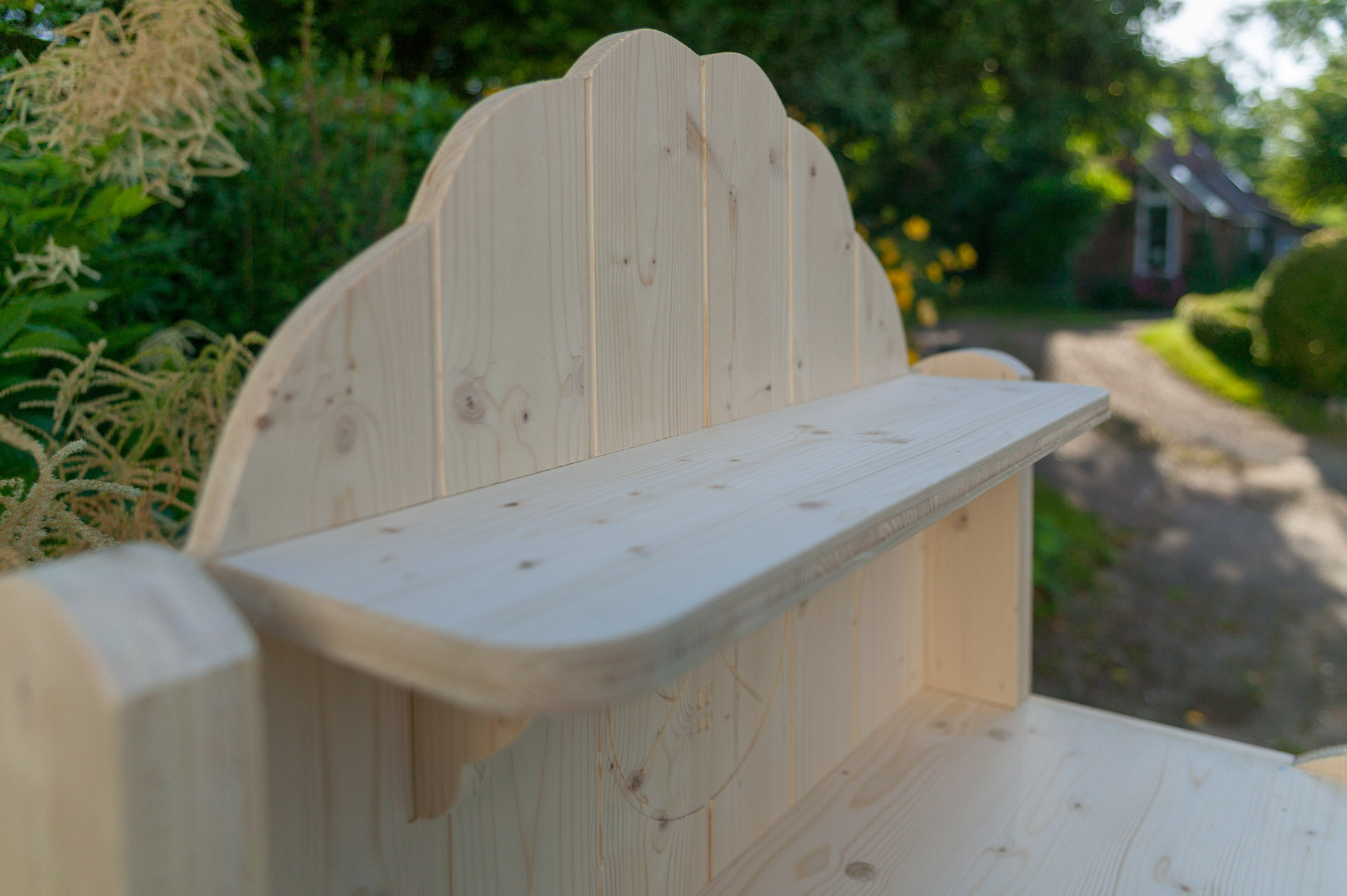 Kommt als Bausatz mit Aufbauanleitung. Alle Teile sind fertig bearbeitet, zum Teil vormontiert. Beste Verbindungselemente. Anlieferung per DHL oder Selbstabholung aus der Manufaktur in Gohfeld