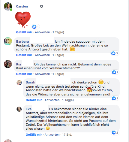 Meine Frau Meike hat sich das ausgedacht und kümmert sich nicht nur um die tägliche Beschickung und Entleerung des Briefkastens vor Ort, sondern auch um die tägliche und individuelle Beantwortung der 1.800 Wunschzettel zum Weihnachtsfest '24 - mittlerweile mit einer stattlichen Anzahl von ehrenamtlichen Weihnachtswichteln.