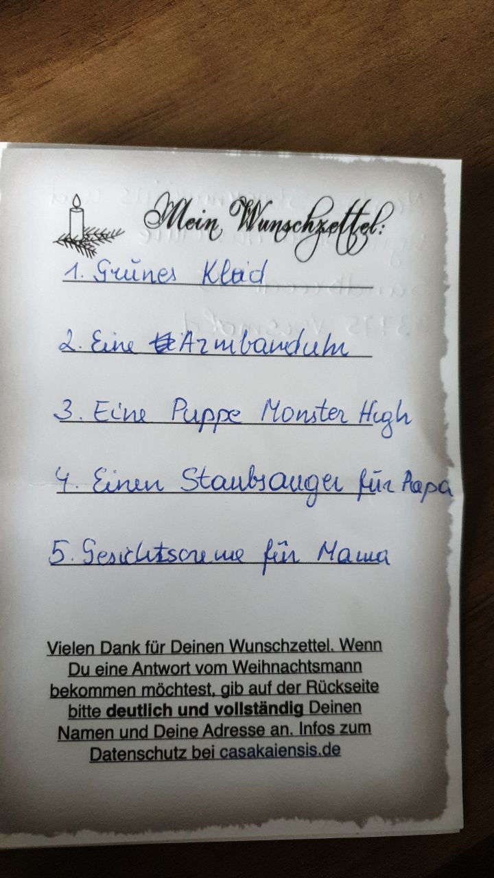 Tatsächlich ist es so, dass auf jeden Wunschzettel, auf dem Name und Adresse angegeben sind, individuell und handschriftlich eingegangen wird. Es gibt weder Vordrucke noch Standardtexte!