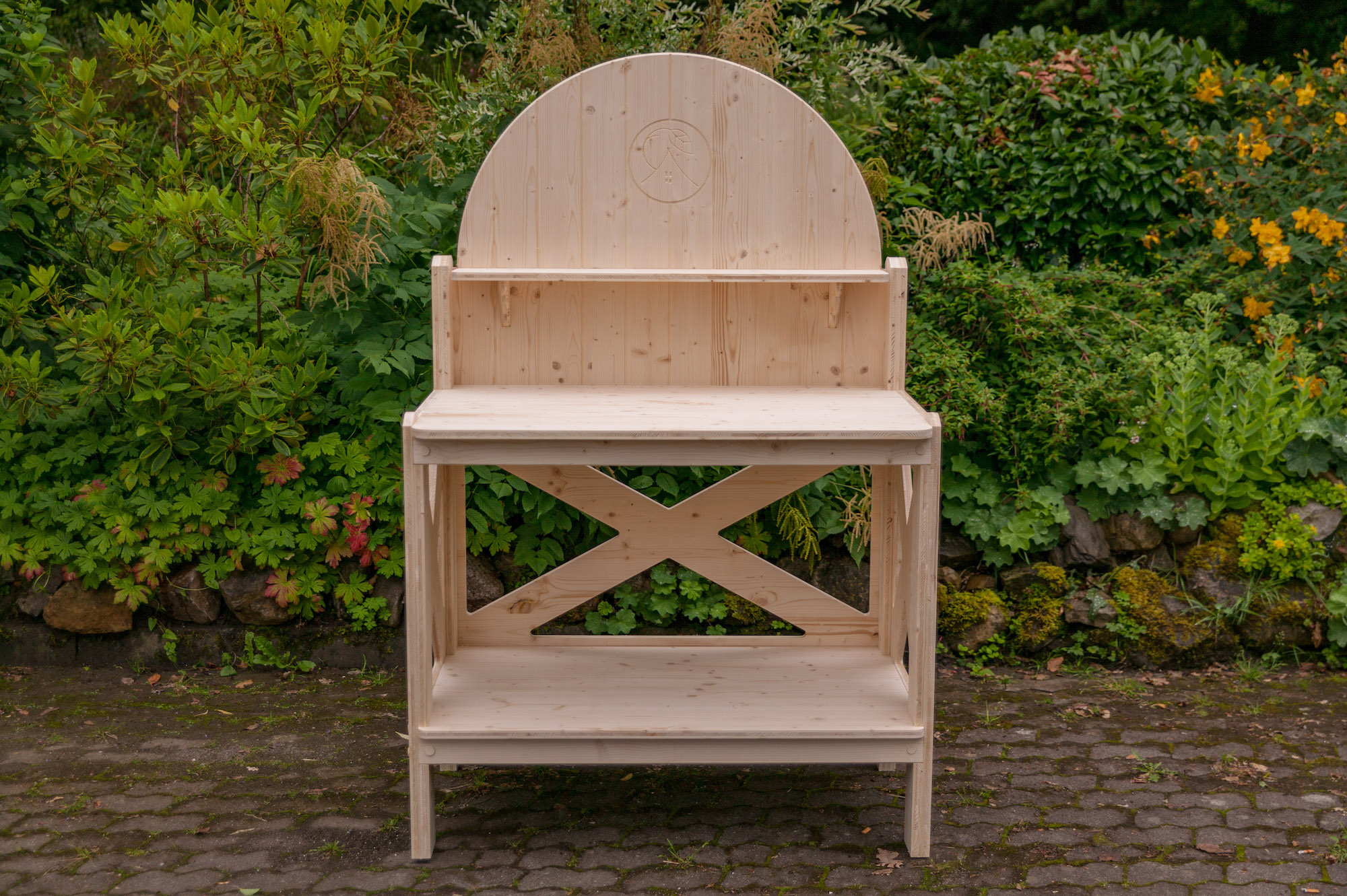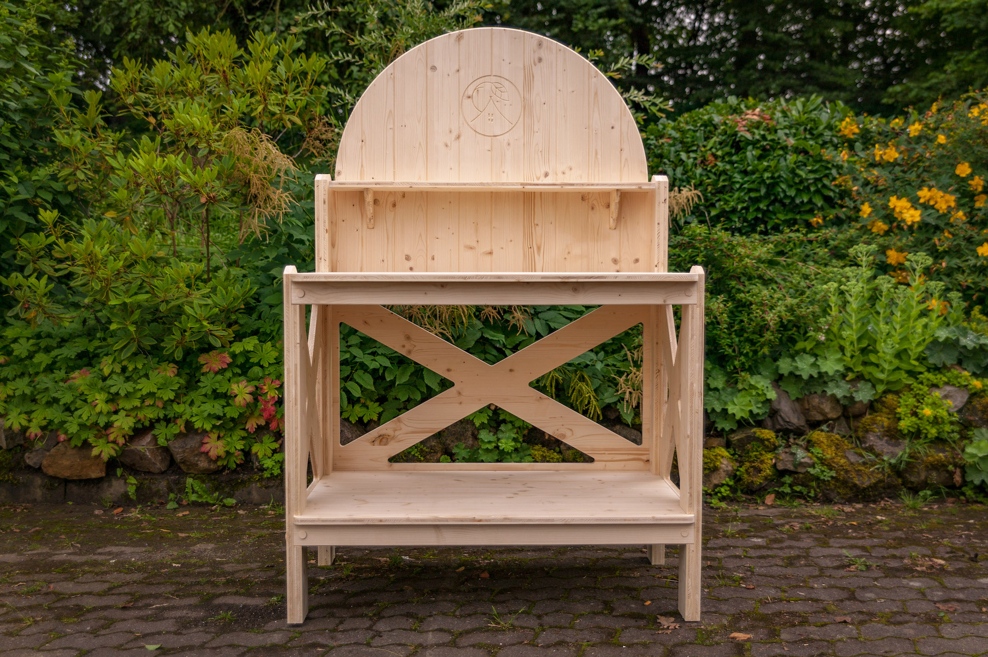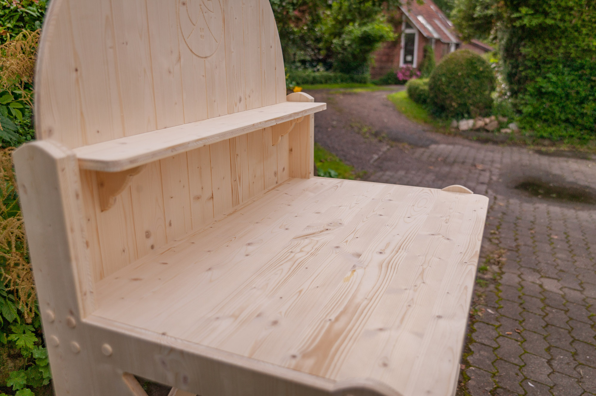 Kommt als Bausatz mit Aufbauanleitung. Alle Teile sind fertig bearbeitet, zum Teil vormontiert. Beste Verbindungselemente. Knöpfe und Scharniere können variieren, Anlieferung per Spedition oder Selbstabholung aus der Manufaktur in Gohfeld