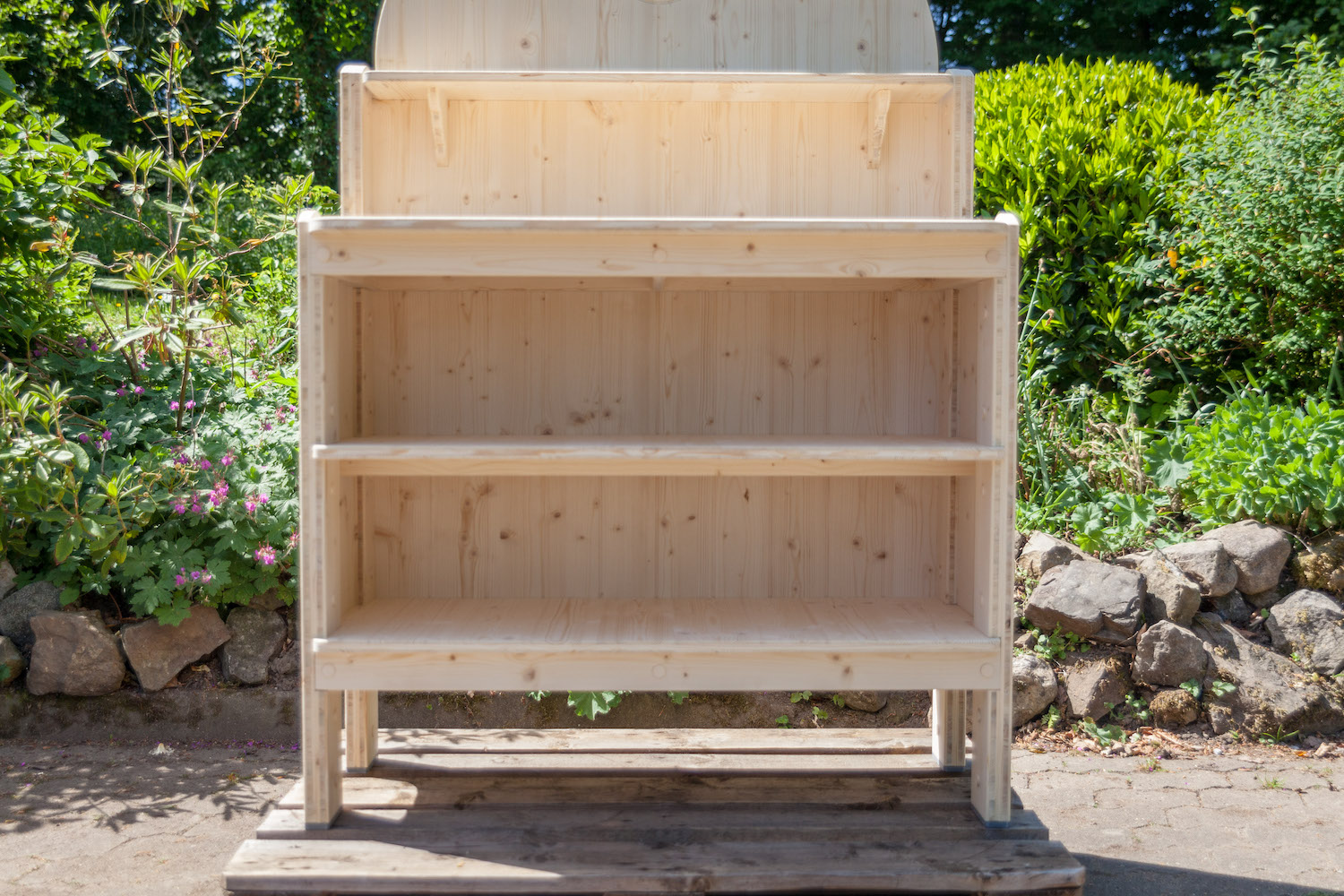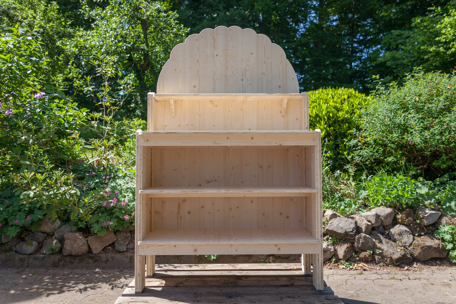 einen zusätzlichen Regalboden eingezogen und den oberen Abschluss der hinteren Wand ein wenig abgerundeter gestaltet.
