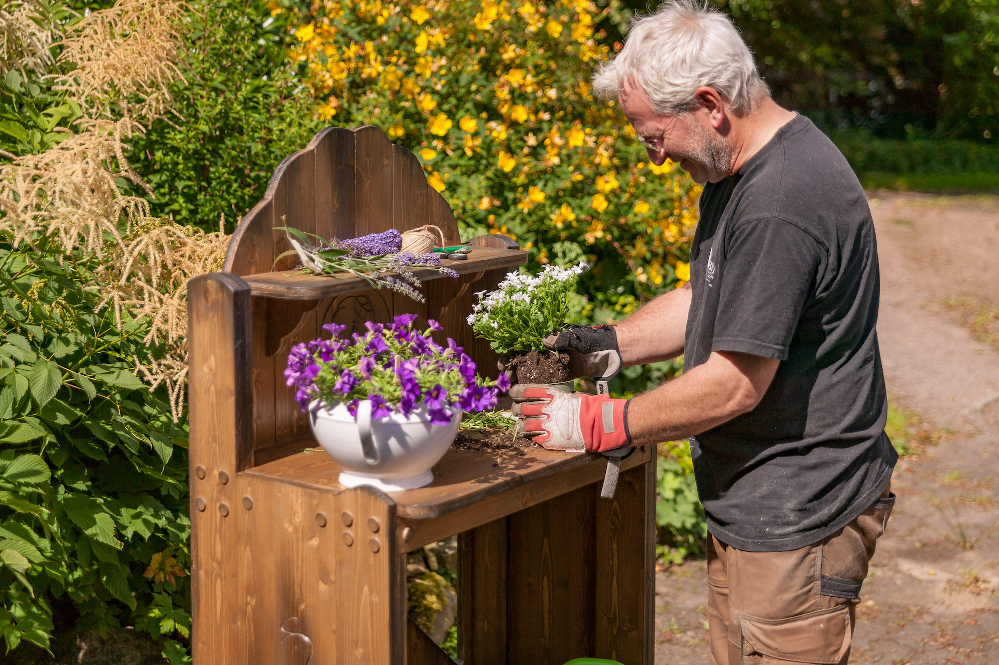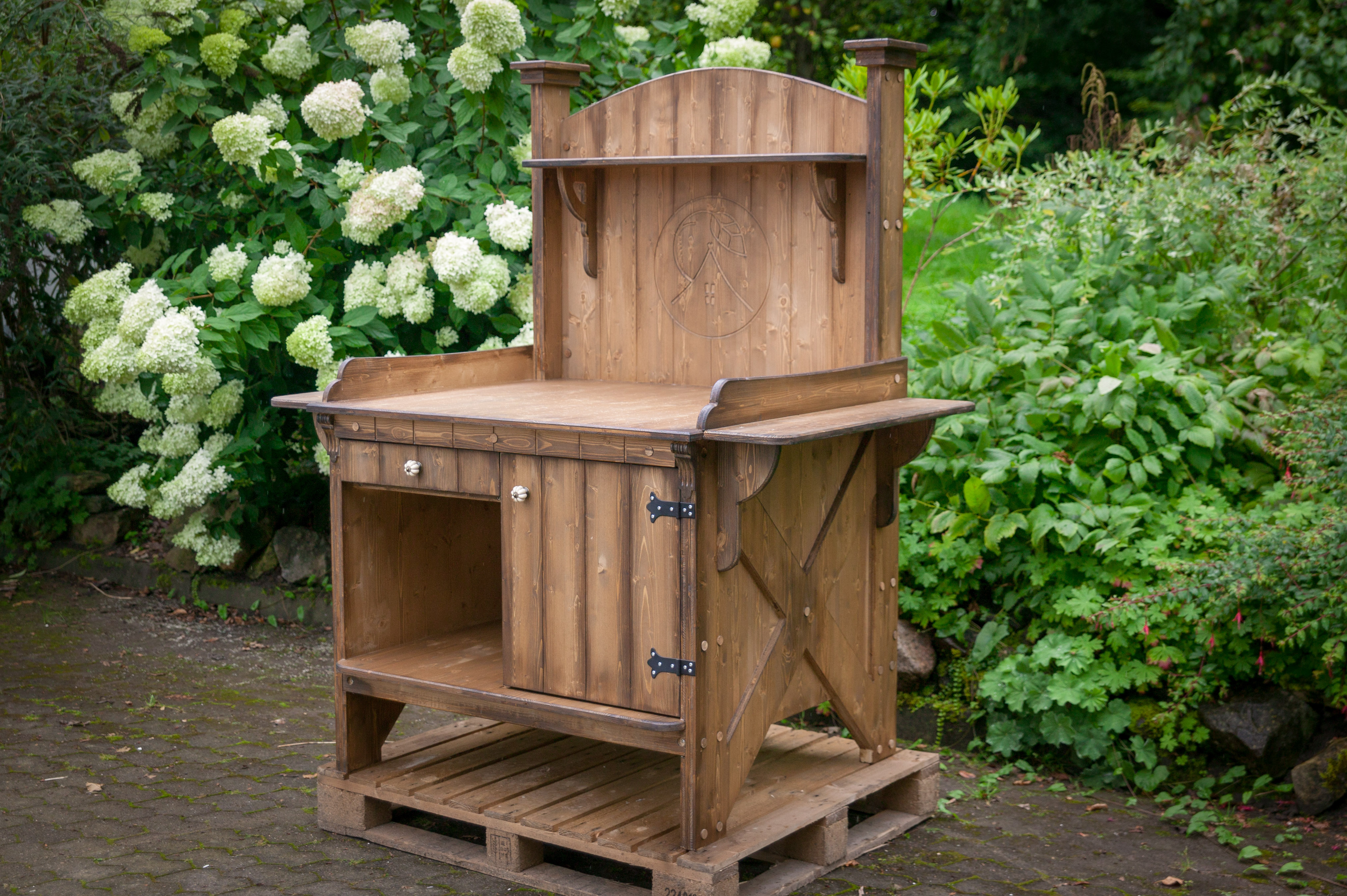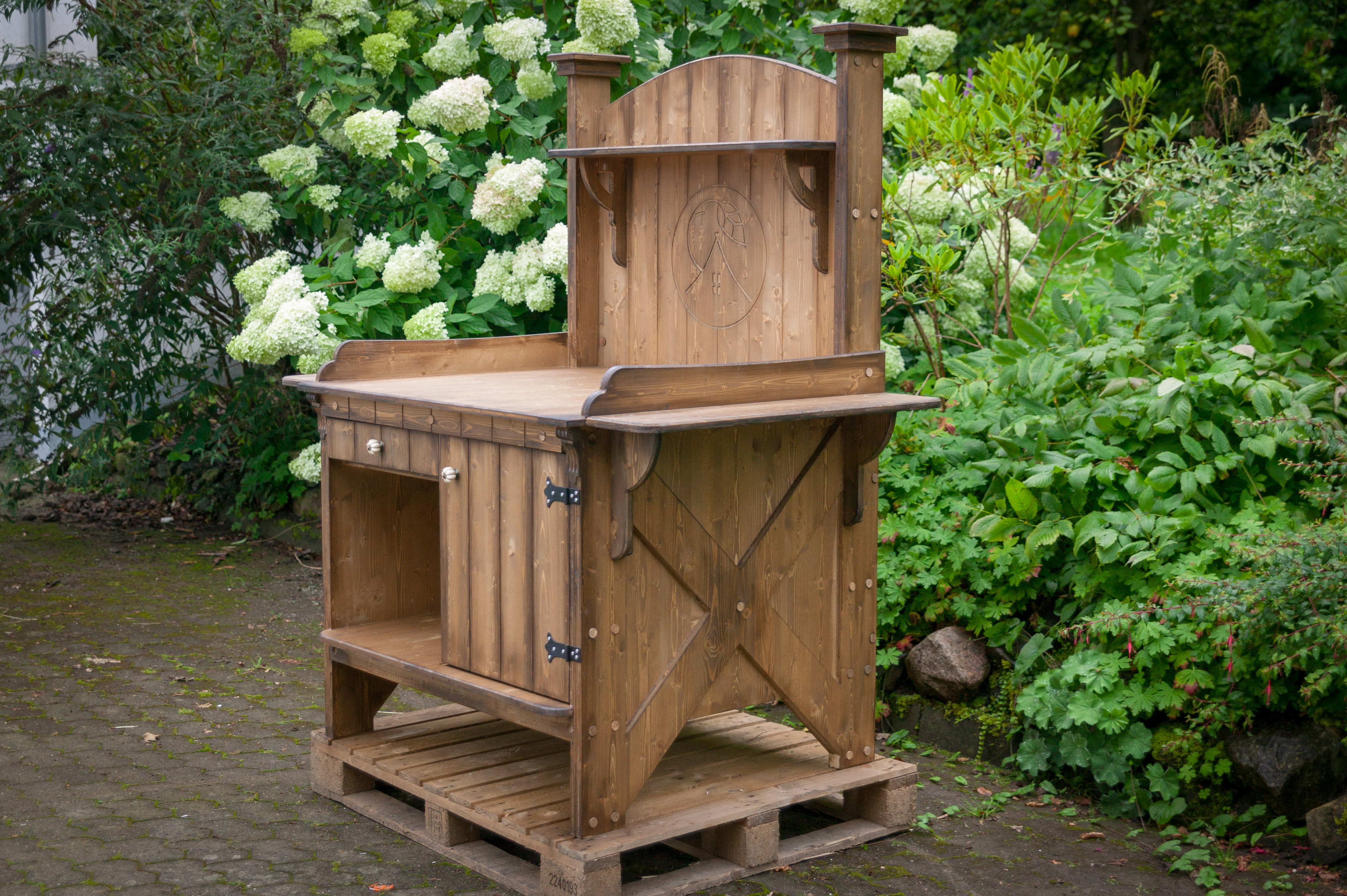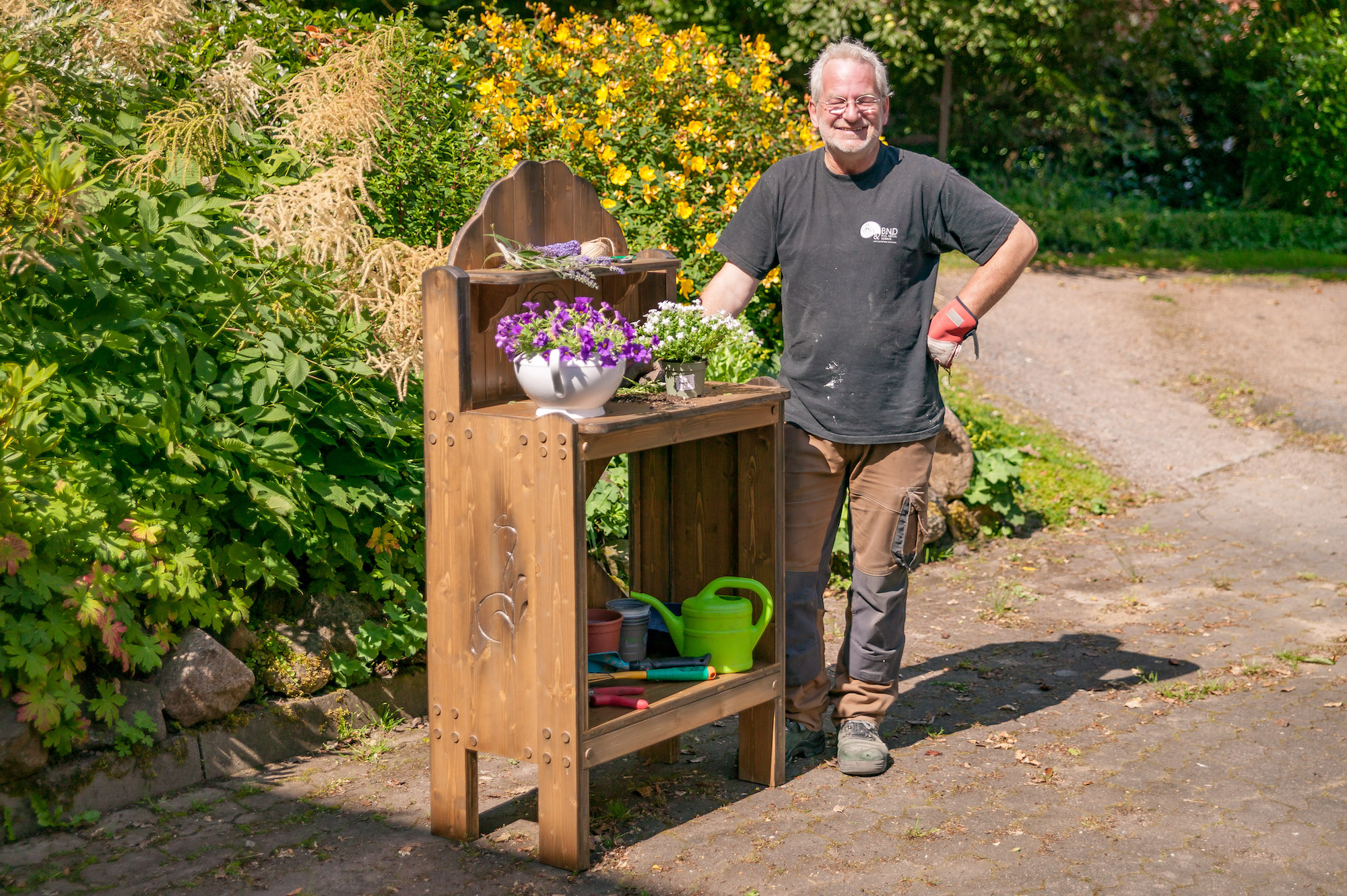 Alle Pflanztische sind aus Vollholz gebaut und daher so schwer, dass sie nicht vom nächsten Windhauch umfallen.
