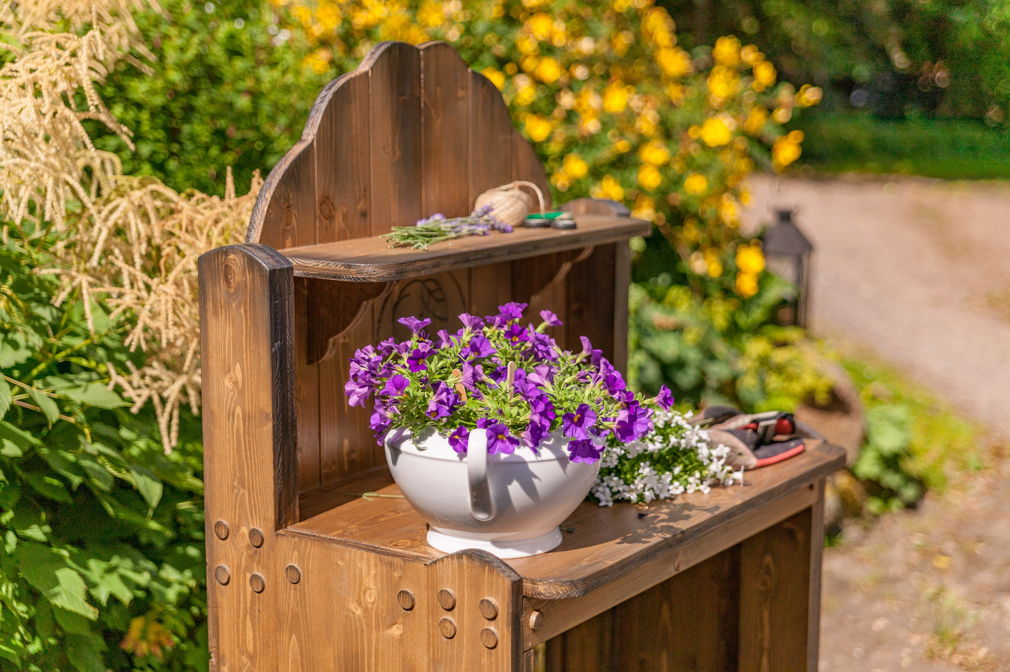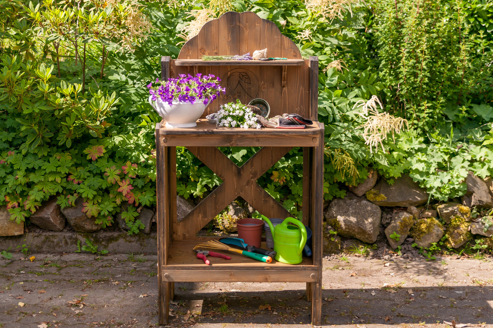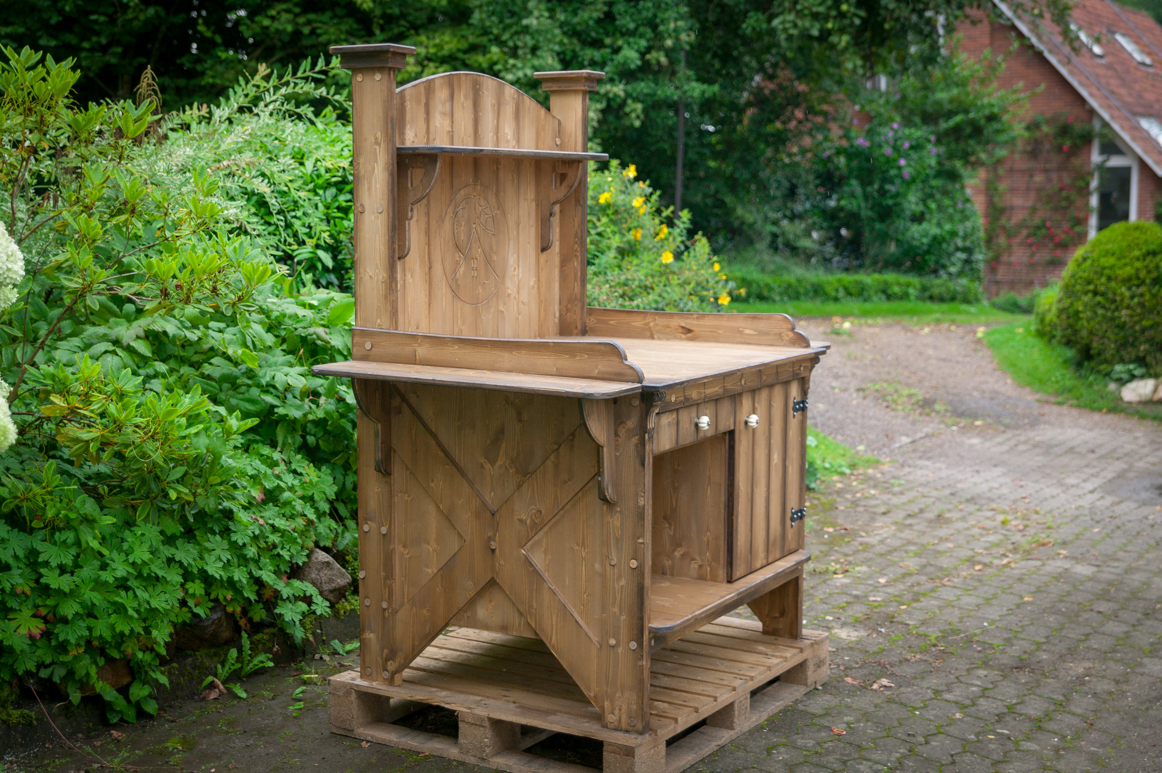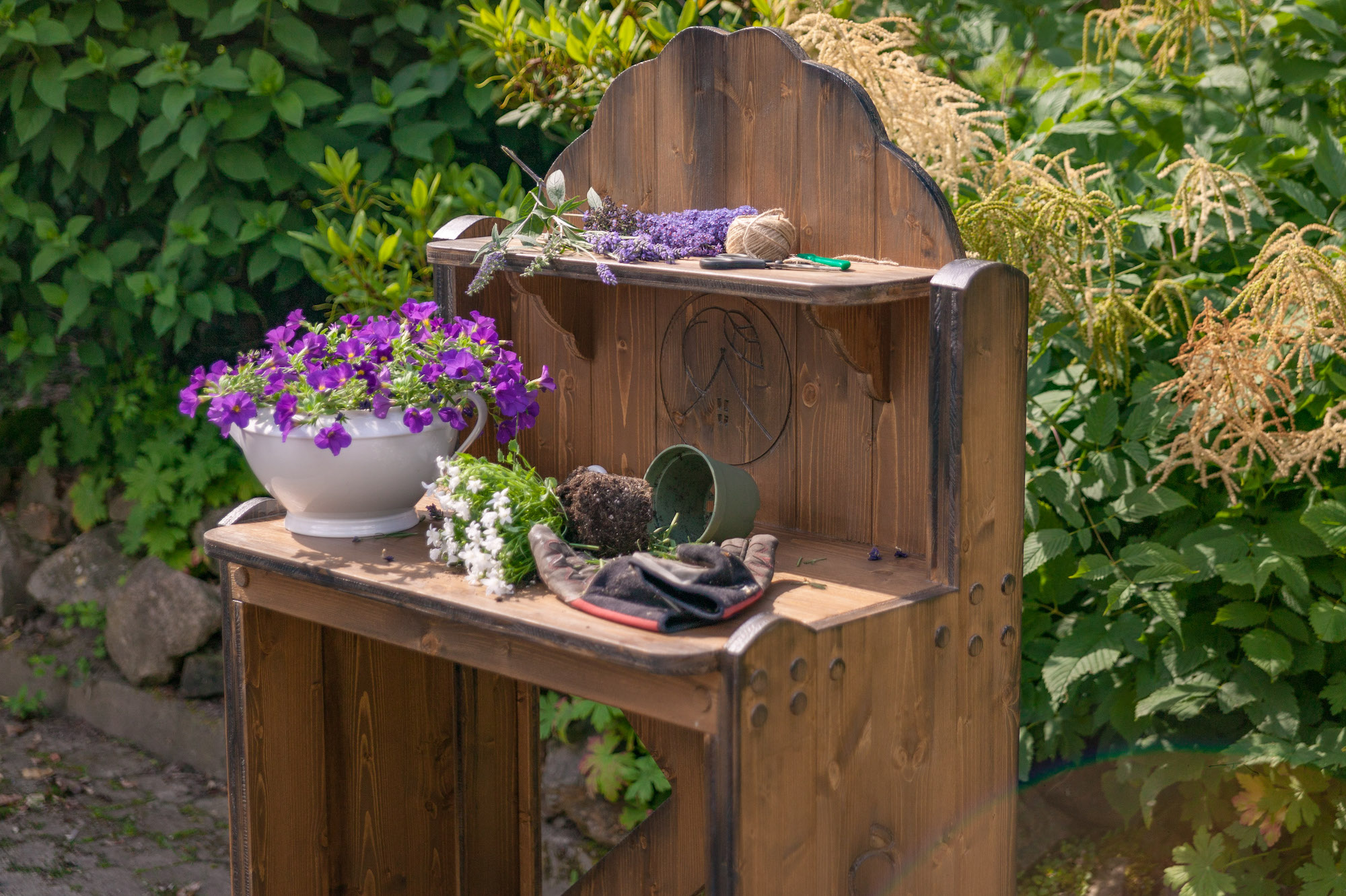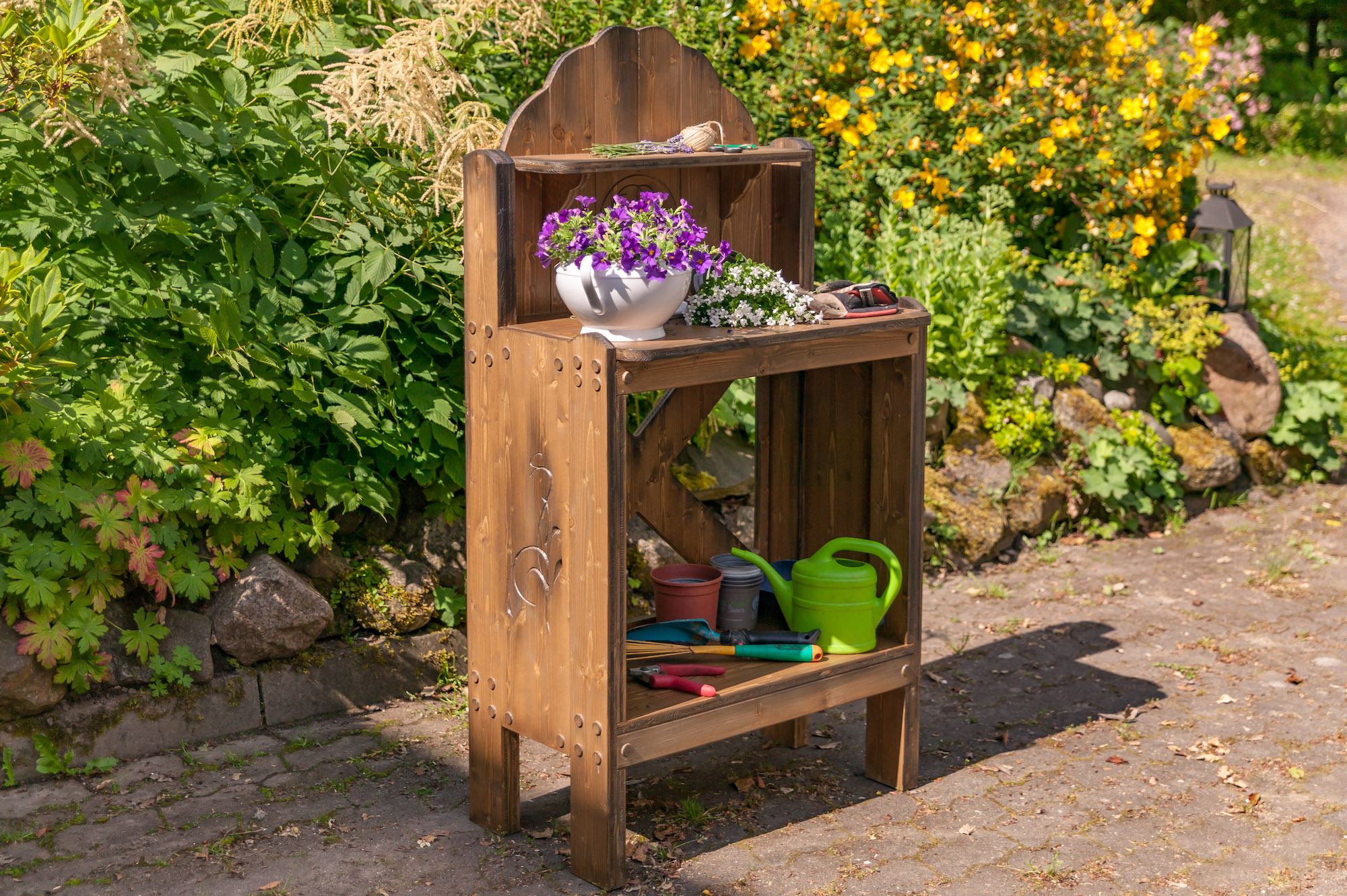 Alle Pflanztische sind aus Vollholz gebaut und daher so schwer, dass sie nicht vom nächsten Windhauch umfallen.