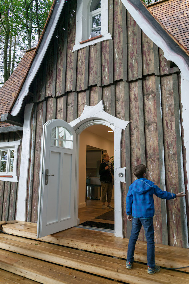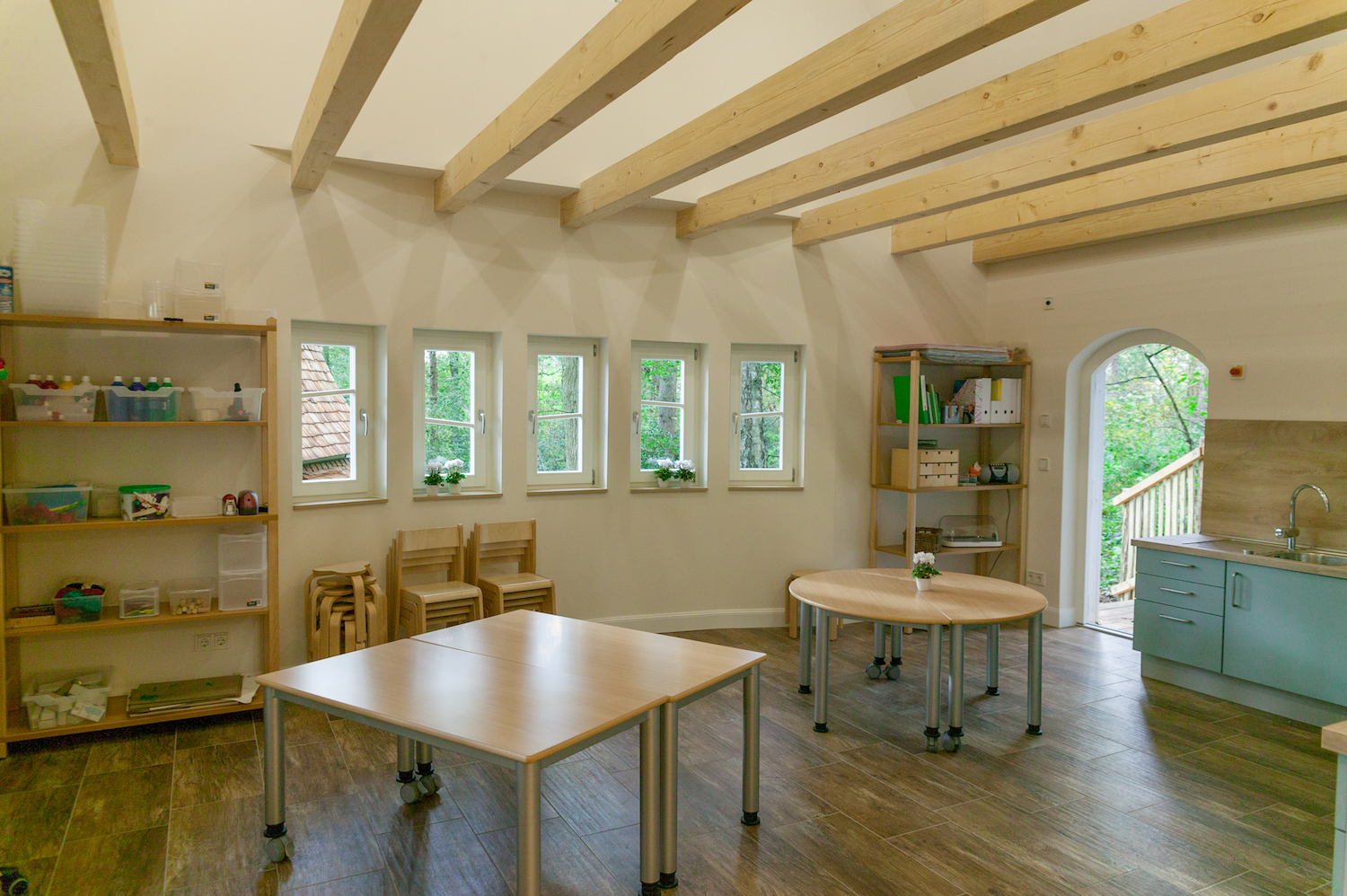 Bislang musste sich die Gruppe in einem alten, grauen Behelfscontainer am Waldesrand treffen, um von dort ihre Exkursionen zu starten, um dort zu essen und um dort den von kleinen und grossen Abenteuern gespickten Tag zu beschliessen. Manchmal, wenn es gar zu doll geregnet hat, war der kleine Container Unterschlupf und Spielzimmer zugleich.